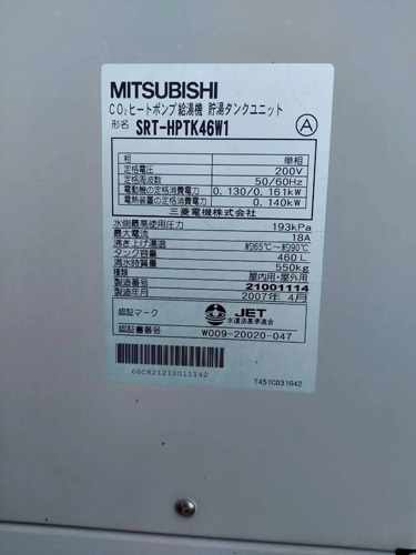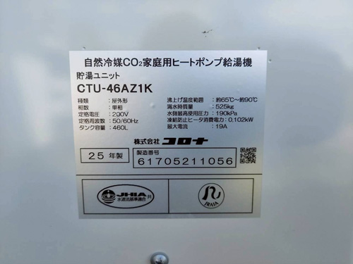 佐久市岩村田 三菱電機CO2ヒートポンプ給湯機貯湯タンクユニットSRT-HPTK46W1→コロナ自然冷媒CO2家庭用ヒートポンプ給湯機ヒートポンプユニットCHP-DZ601K、貯湯ユニットCTU-46AZ1K エコキュート交換工事