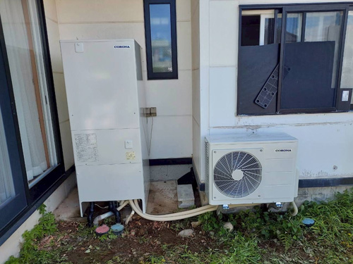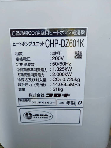 佐久市岩村田 コロナ自然冷媒CO2家庭用ヒートポンプ給湯機ヒートポンプユニットCHP-DZ601K、貯湯ユニットCTU-46AZ1K エコキュート交換工事